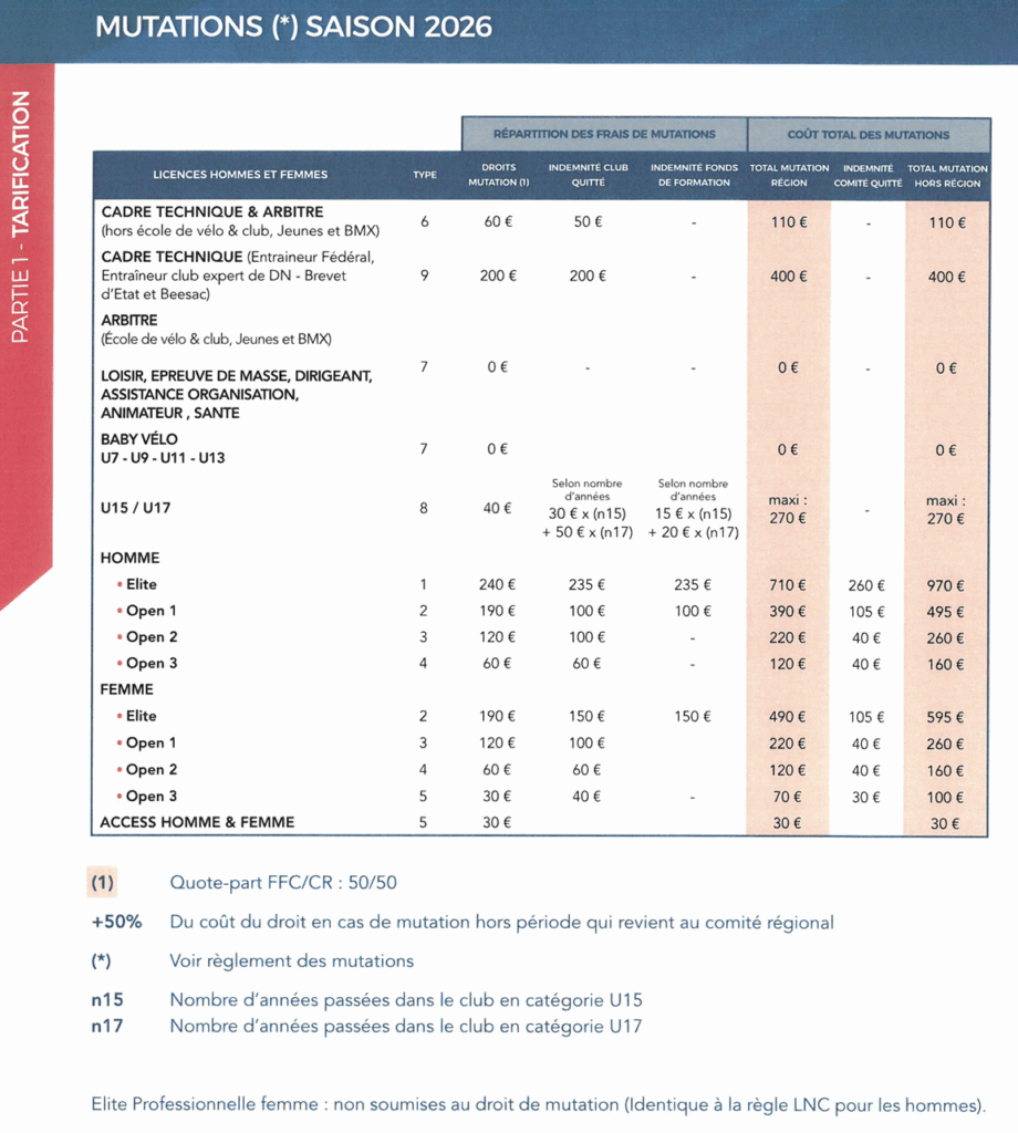 Conformément à la réglementation des mutations (article 5.2 OBLIGATIONS DU LICENCIÉ et article 7 INDEMNITÉS CLUB QUITTÉ), le comité ne gère plus les indemnités club quitté comme les années précédentes.