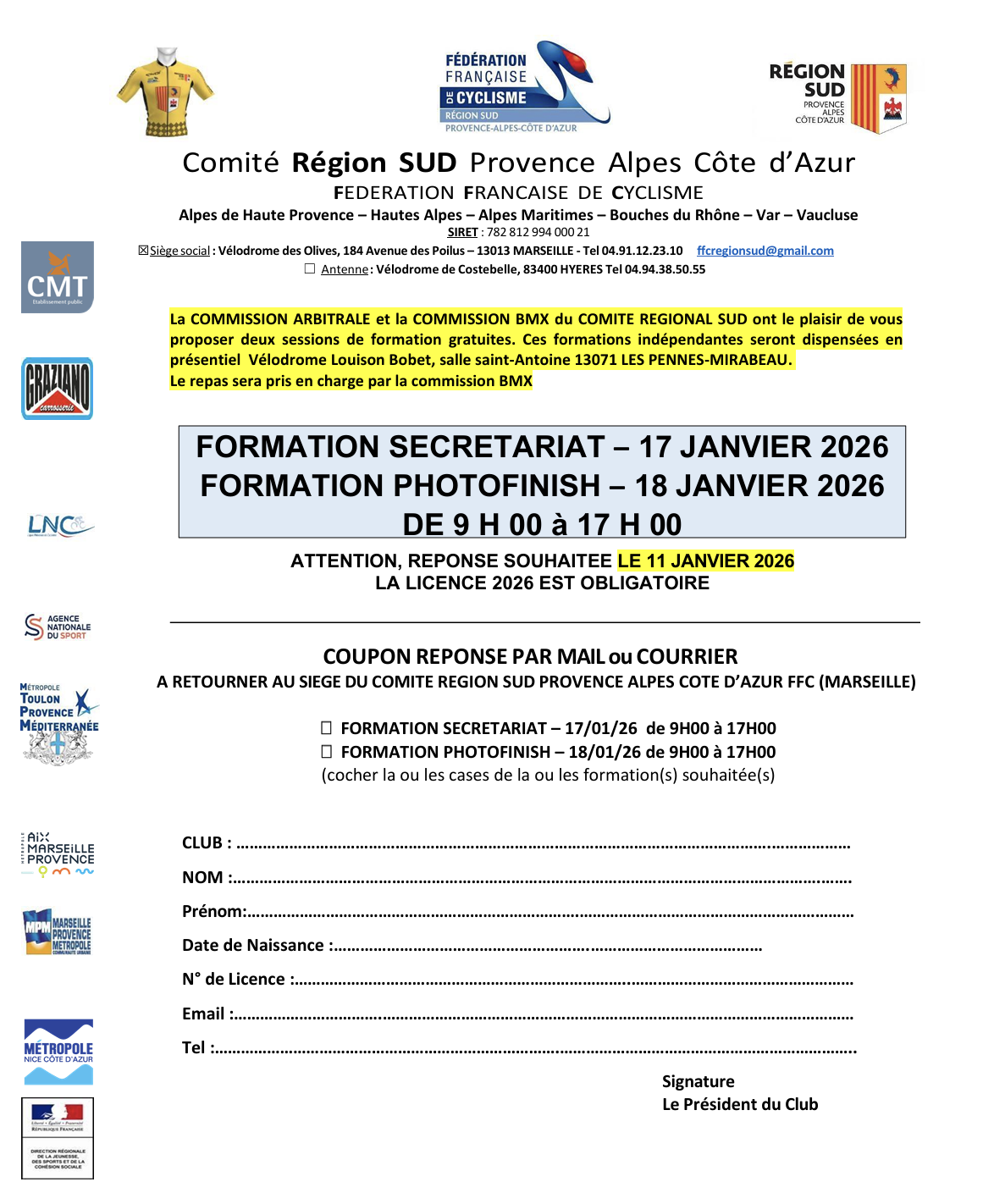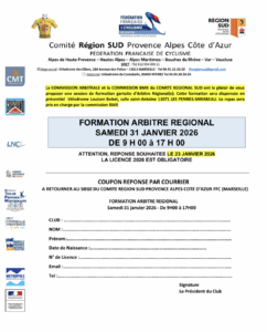 Le comité régional met en place des formations gratuites d’arbitres (arbitre régional le 31/01/26, secrétariat et photofinish les 17 et 18/01/26) au cours du mois de janvier 2026.