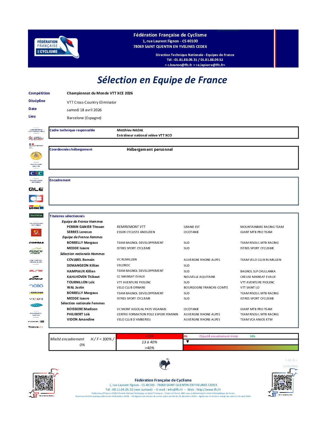 Championnat du Monde VTT XCE 2026 – Barcelone