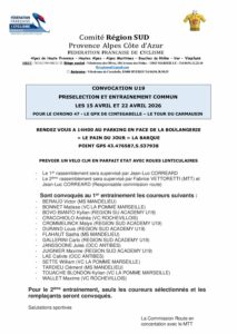 CONVOCATION U19 – 15 ET 22 AVRIL 2026