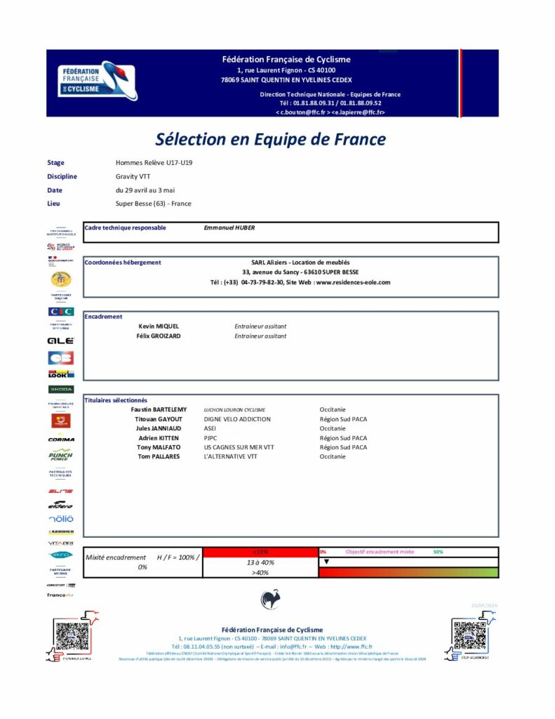 Sélection en Equipe de France – 29 avril au 3 mai