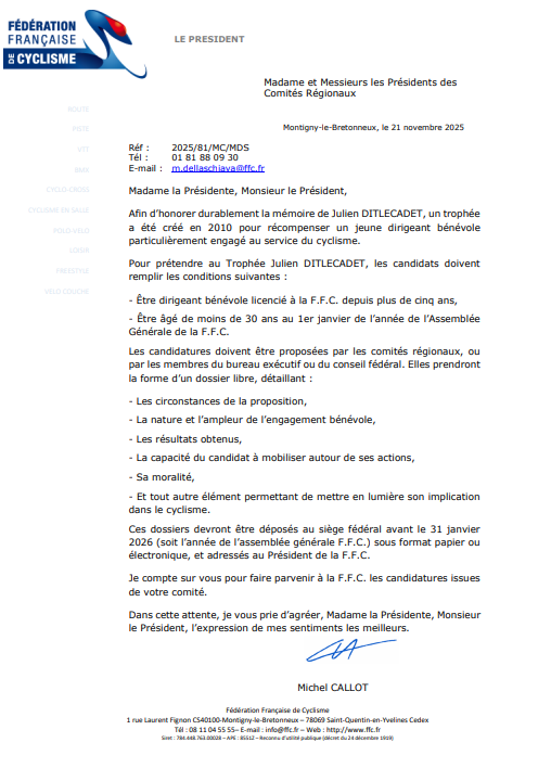 Parution de la Note aux Clubs BMX 2026 ! La Fédération Française de Cyclisme met à disposition la note officielle…